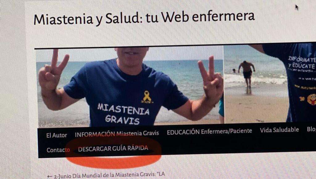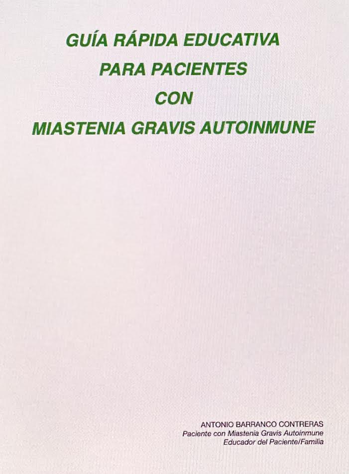 Ya podemos descargar en formato PDF la «GUÍA RÁPIDA EDUCATIVA PARA PACIENTES CON MIASTENIA GRAVIS», en la Web http://www.miasteniaysalud.com, en el menú principal. Consta de 2 partes, INFORMATIVA sobre la enfermedad, y EDUCATIVA sobre diferentes aspectos que pueden afectar a nuestra calidad de vida. Una guía muy resumida que resalta las ideas centrales que debemos tener en cuenta. Reseñar que cada temática esta ampliamente desarrollada (con su bibliografía correspondiente) en la Web